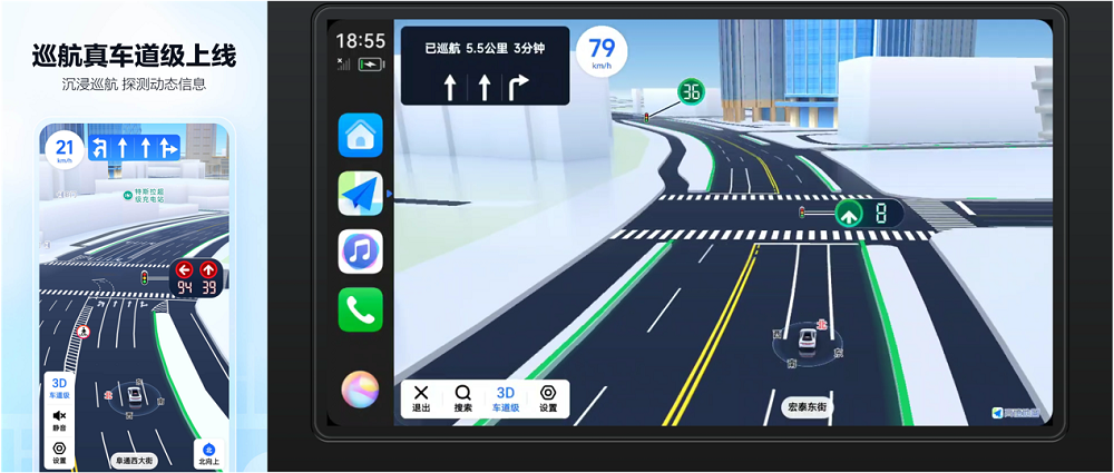 夜间开车导航,使用全新升级的深色模式,界面柔和不刺眼,信息依然清晰可读,行车安全极大提升。